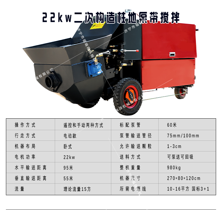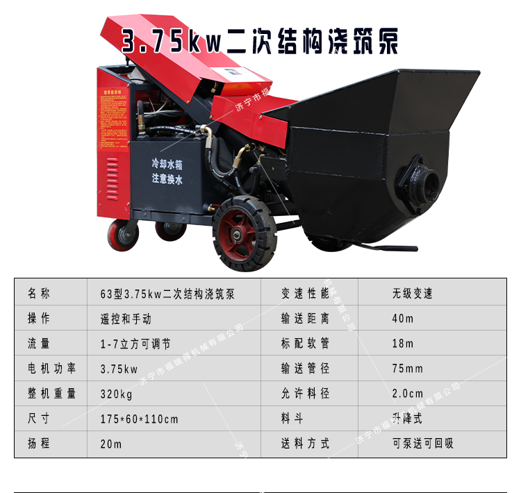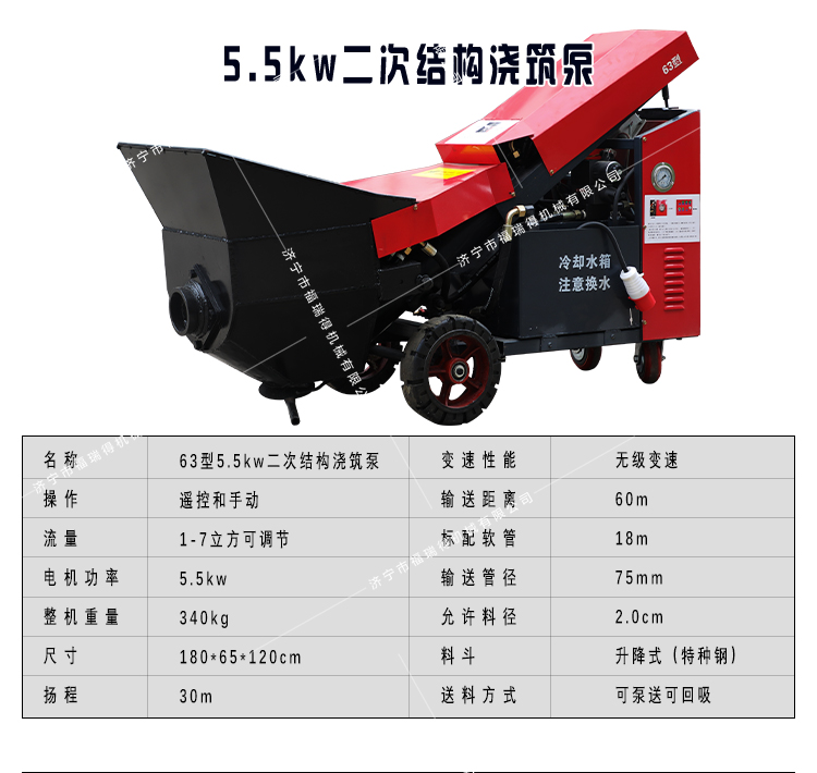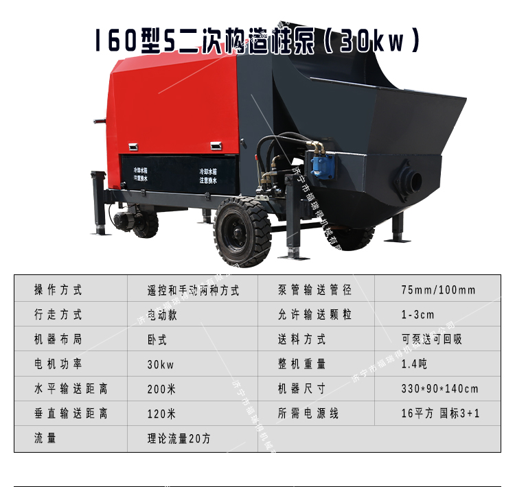 產品簡介:細石混凝土輸送泵主要用于坡道灌漿、水平地面、隧道澆筑。模板灌漿等。采用加粗料缸,讓機械每一次循環(huán)出料多百分之二十 ;移動便捷全部采用快接式管道卡,提高工作效率 。