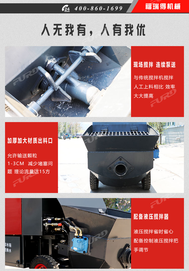 產品簡介:該設備具有電機功率大、性能穩(wěn)定、施工效率高等優(yōu)勢,使用電動澆筑泵大大提高了施工效率,降低勞動強度,節(jié)約人工,被廣泛應用。具體產品詳情如下: