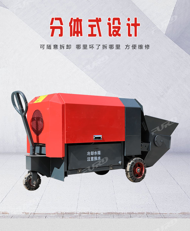 澆筑泵提高了施工效率,降低勞動強(qiáng)度,節(jié)約人工,被廣泛應(yīng)用。7.5kw手推式混凝土澆筑泵,手推式行走,具有攪拌功能,更加方便使用。