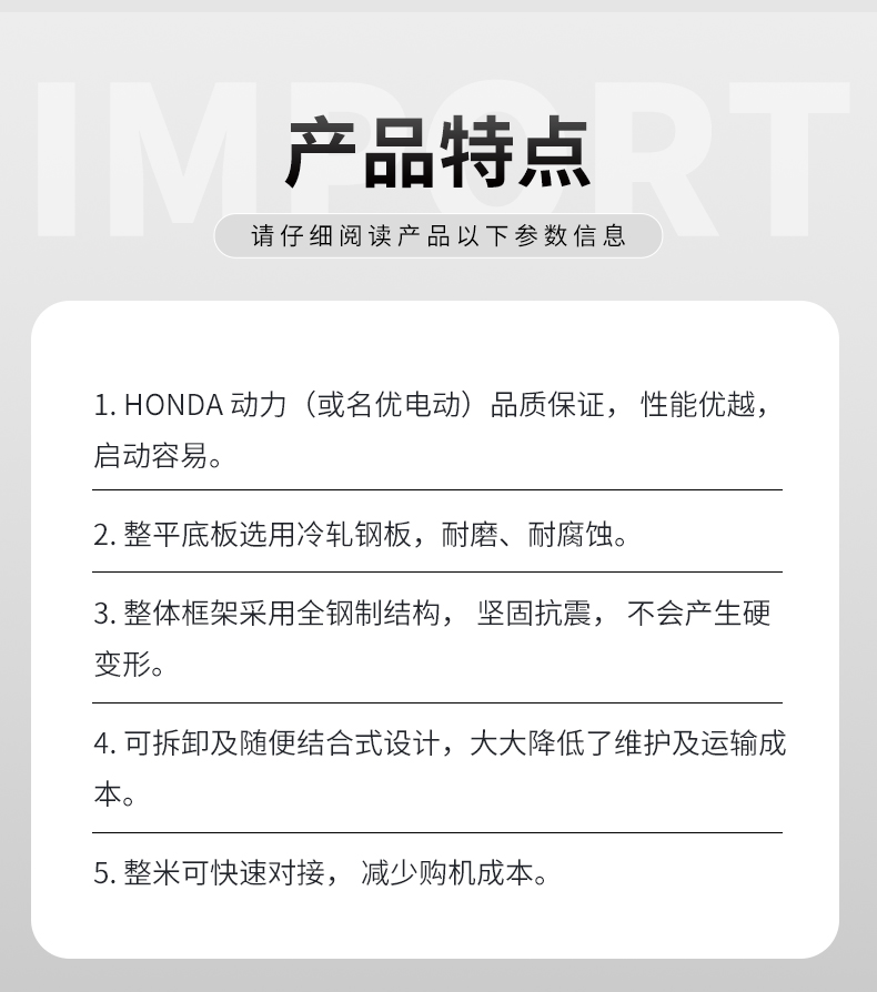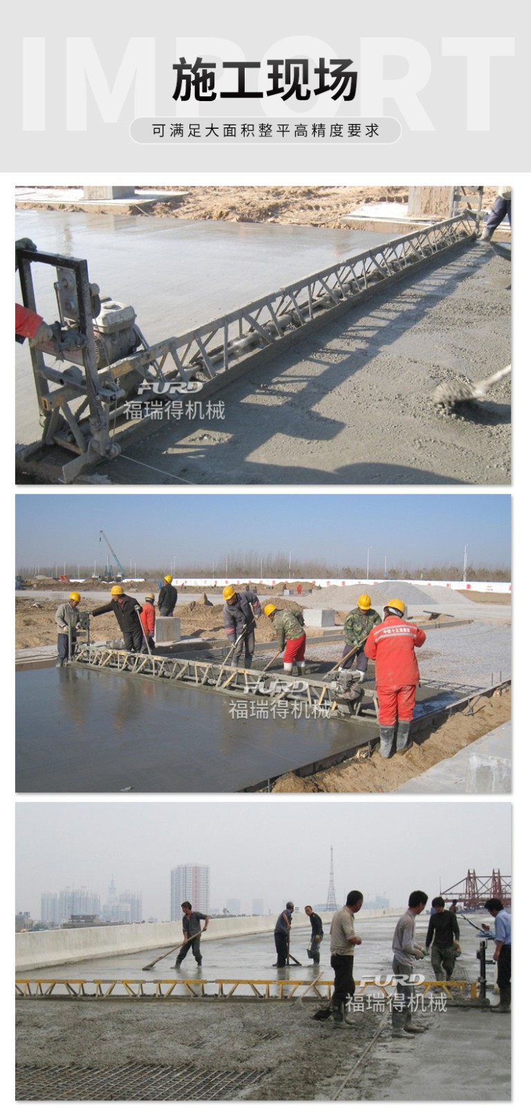 產(chǎn)品簡介:混凝土整平機(jī)主要用于混凝土地面的提漿、壓實(shí)、整平,是修建公路、車間、廣場的新型設(shè)備。