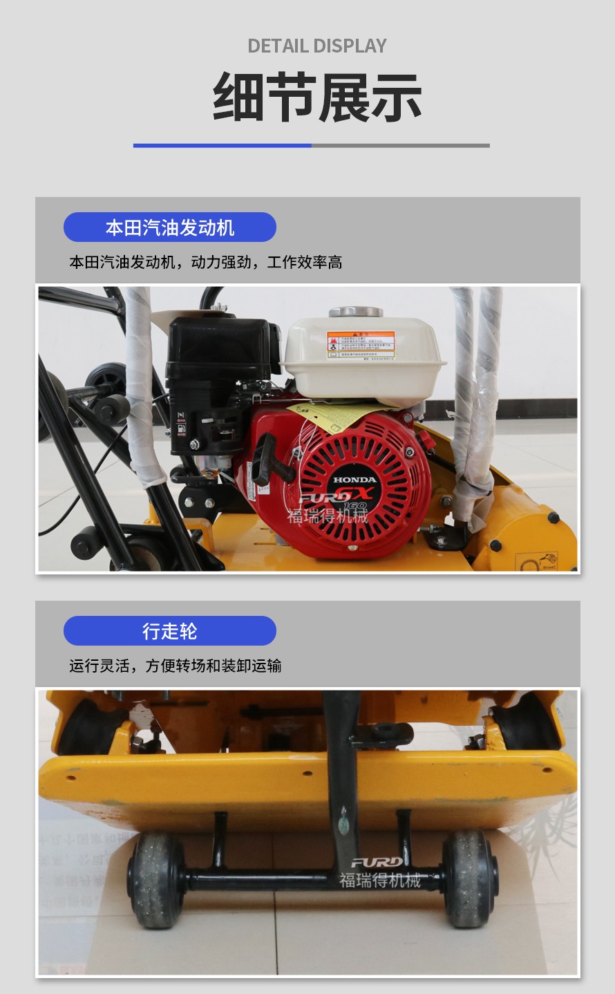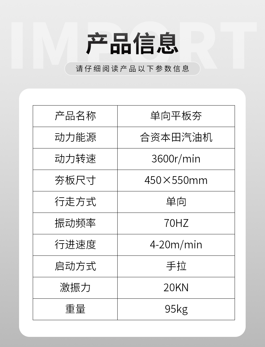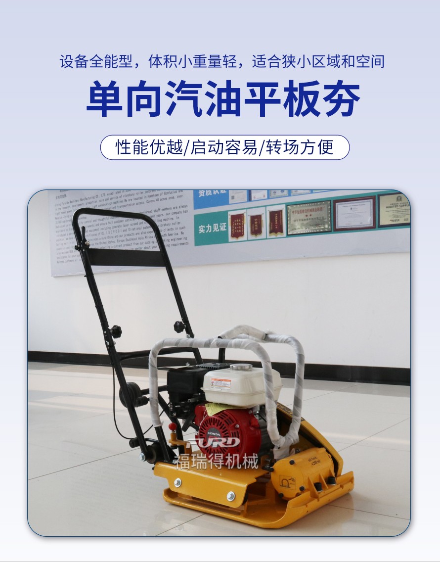 產(chǎn)品簡介:單向平板夯FPB-20適用于路基邊緣、橋涵、管道、溝槽底部等狹長地帶的壓實。 HONDA動力,性能優(yōu)越,啟動容易 采用單獨懸掛式強力減震機構,減少對發(fā)動機的沖擊,提高操作人員的舒服感。