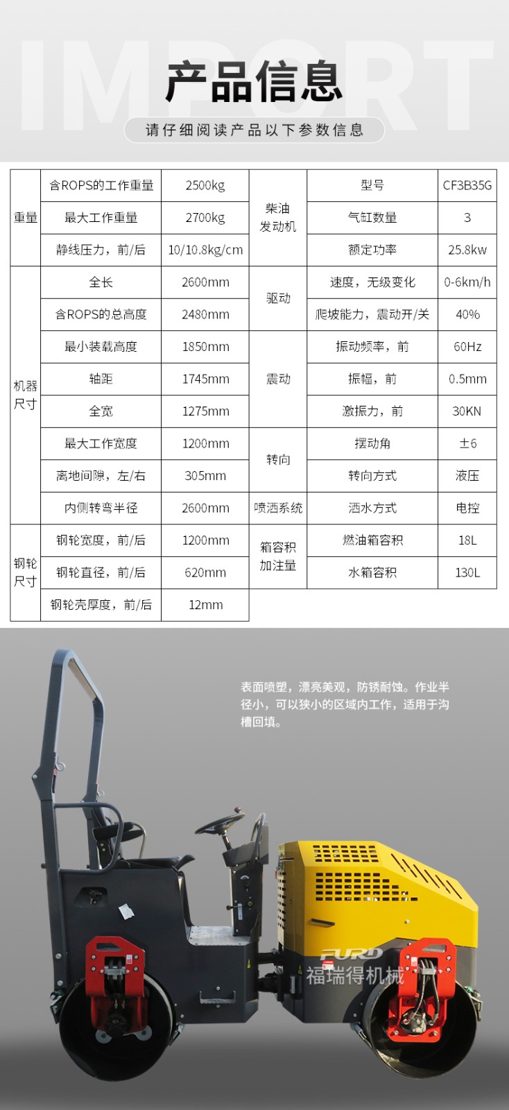 產(chǎn)品名稱(chēng):FYL-1100 2.5噸全液壓壓路機(jī)