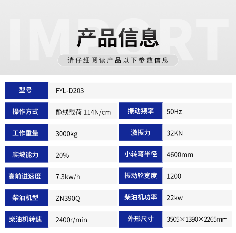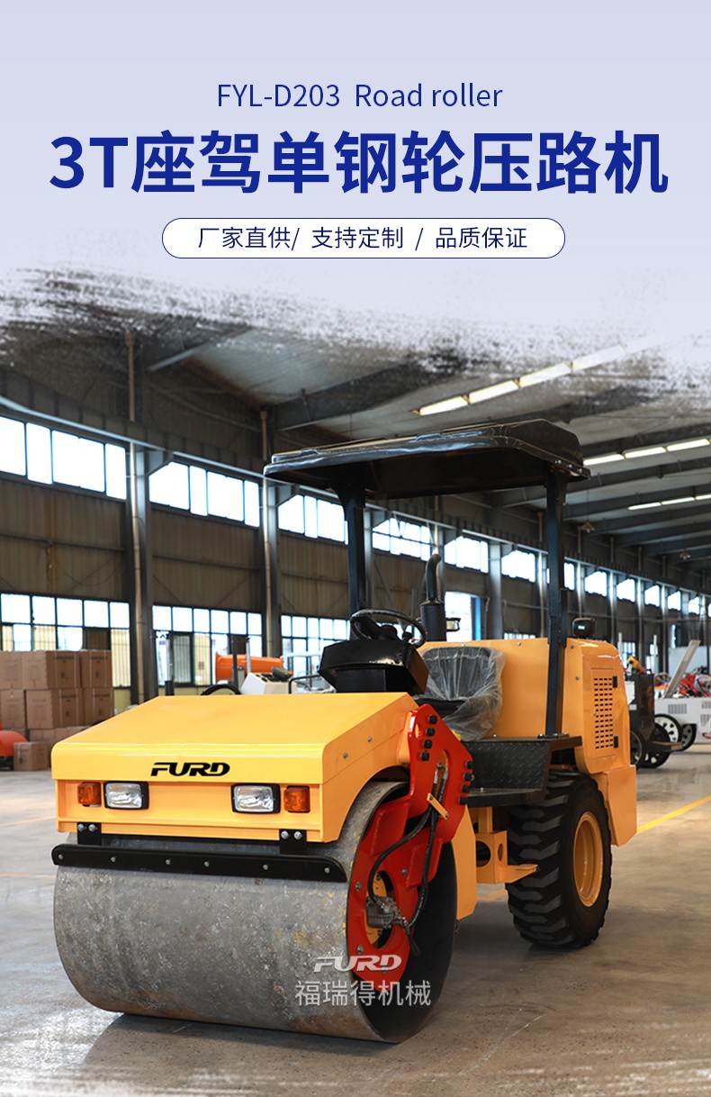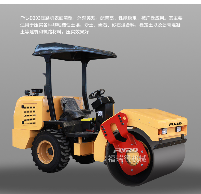產(chǎn)品簡介:FYL-D203壓路機主要適用于壓實各種非粘結(jié)性土壤、沙土、礫石、砂石混合料、穩(wěn)定土以及瀝青混凝土等建筑和筑路材料,壓實效果好...